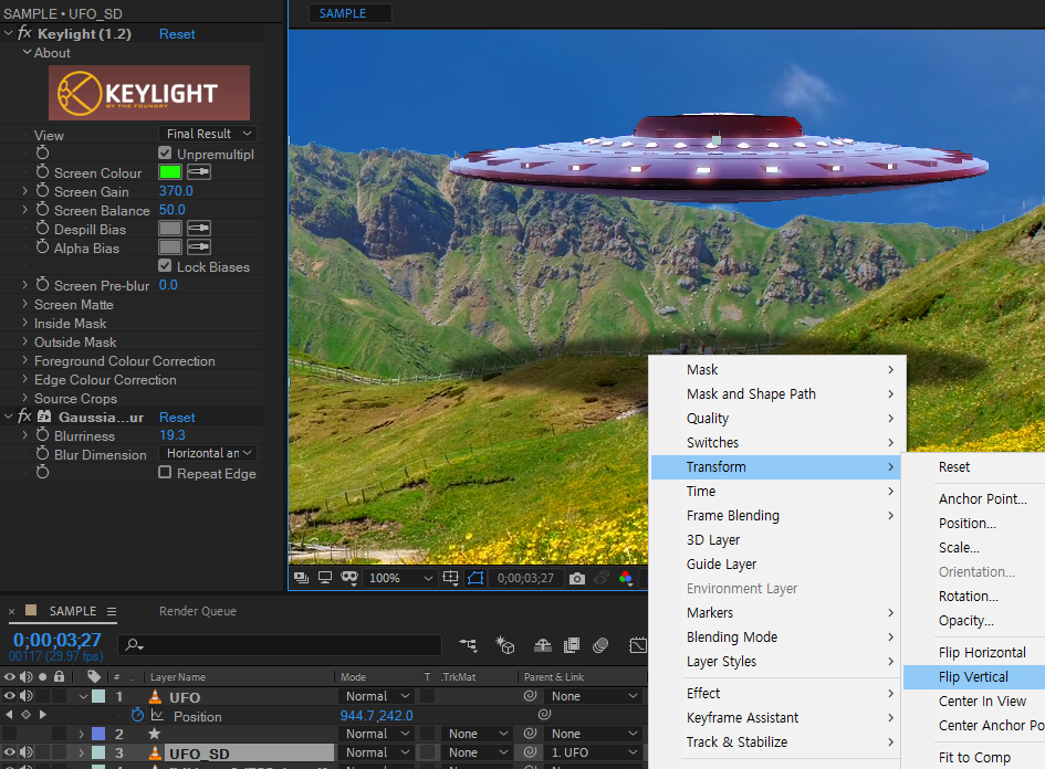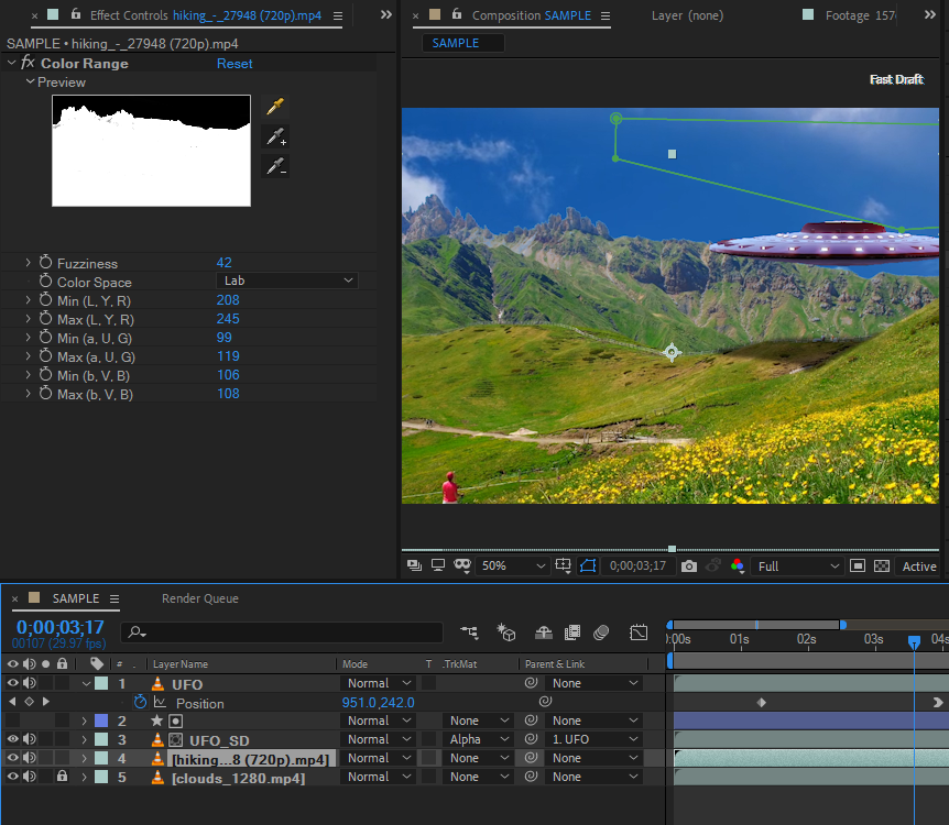 After Effects, UFO, UAP, Science fiction film, SF, CG, Chroma Key, Color Range, Green Screen, Keylight, Track Matte Alpha, Unidentified Flying Object, Unidentified Aerial Phenomenon