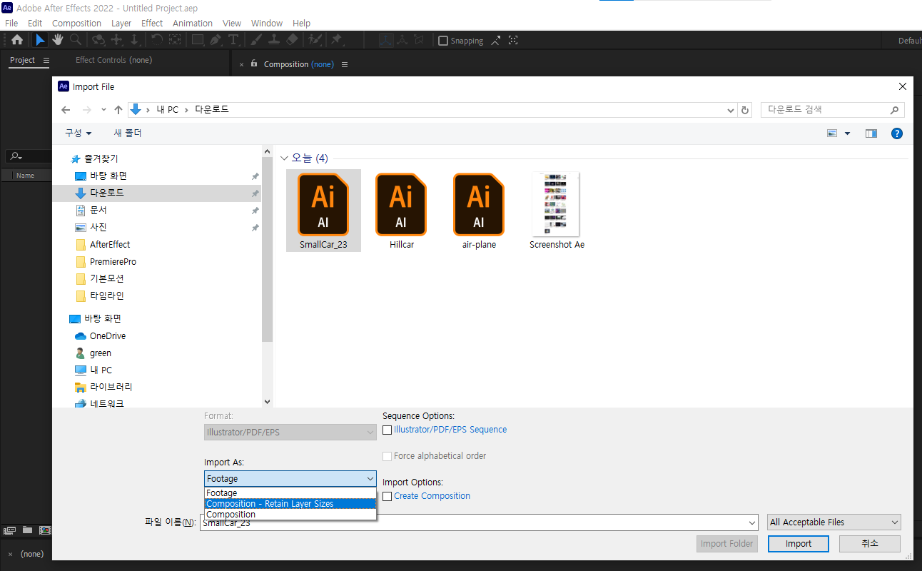 Ai파일을 Ae에서 활용한 동일한표현의 예시