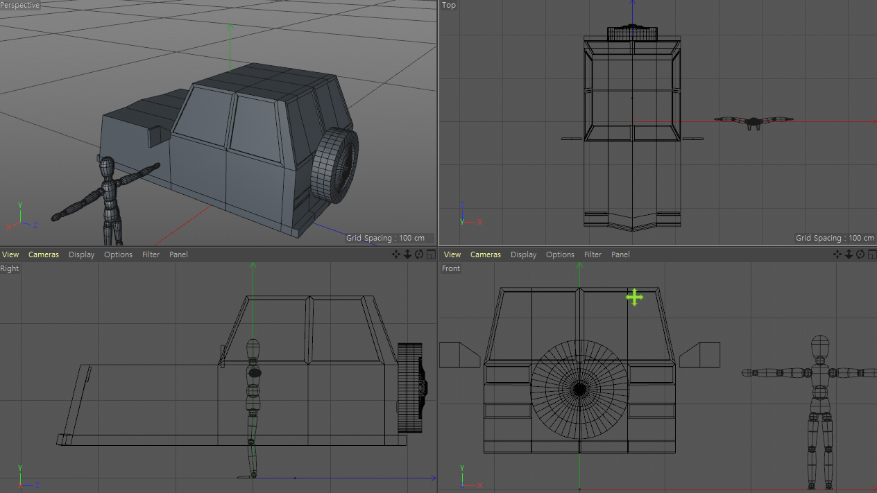 C4D는 기본적인 카메라 뷰가 Perpective View에서 보는 것입니다. 원하는 카메라앵글에서 기본적인 모델링도 하지만, 여러분이 원하는 뷰 그대로 이미지 / 비디오 포맷으로 내보낼 수 있습니다.