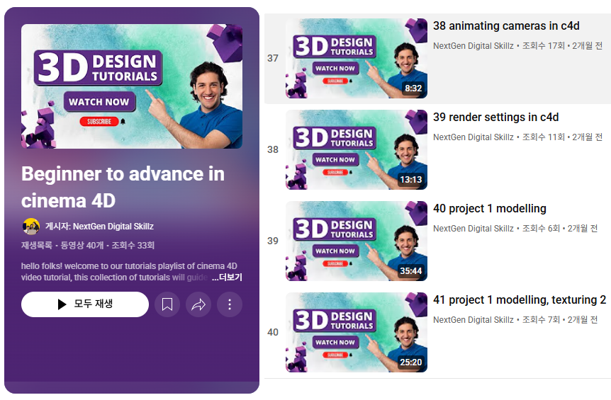 NextGen Digital Skillz에서 제공하는 시네마4D R26기준 초보 사용자를 위한 40개 짧은 강좌를 참고하세요.