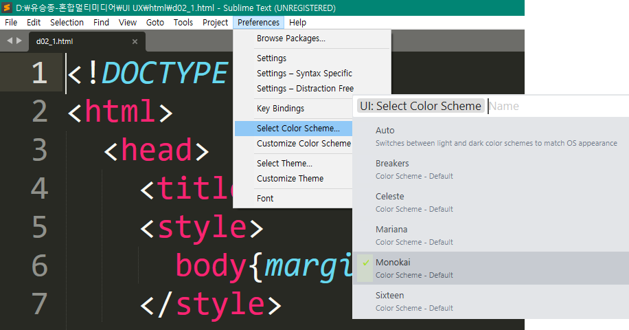 Sublime Text 3 외에도 Visual Studio Code를 이용하기도 하며 5종 정도의 웹문서 편집기가 있습니다.