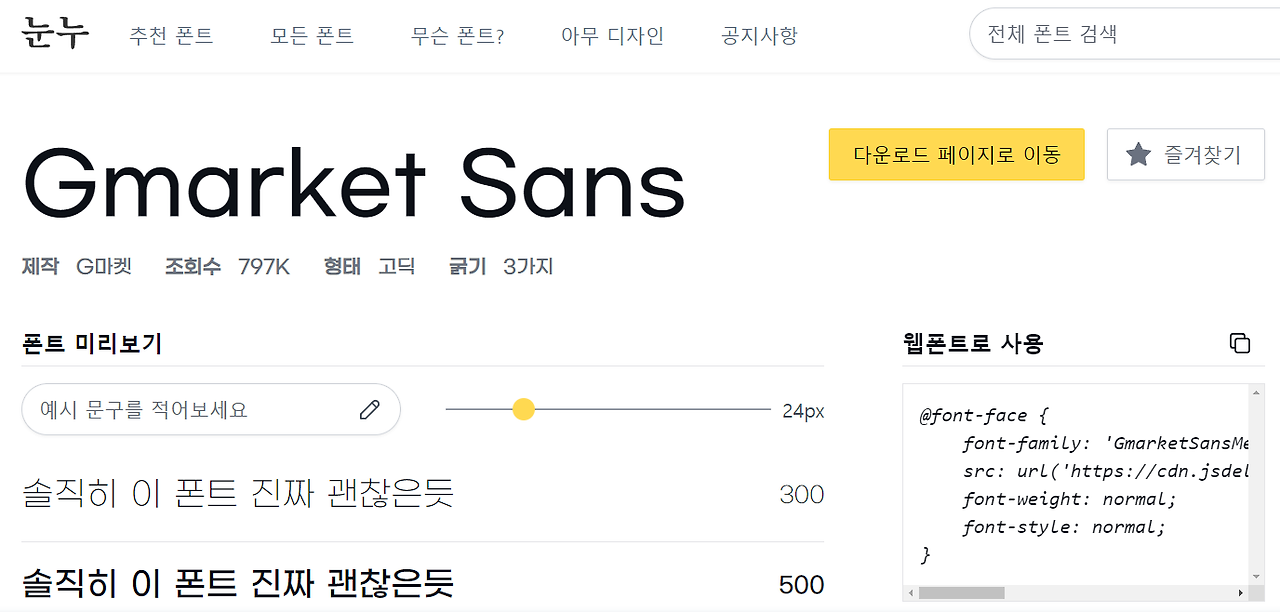 ◆ 웹폰트, 웹용 전용서체 [눈누-서체]