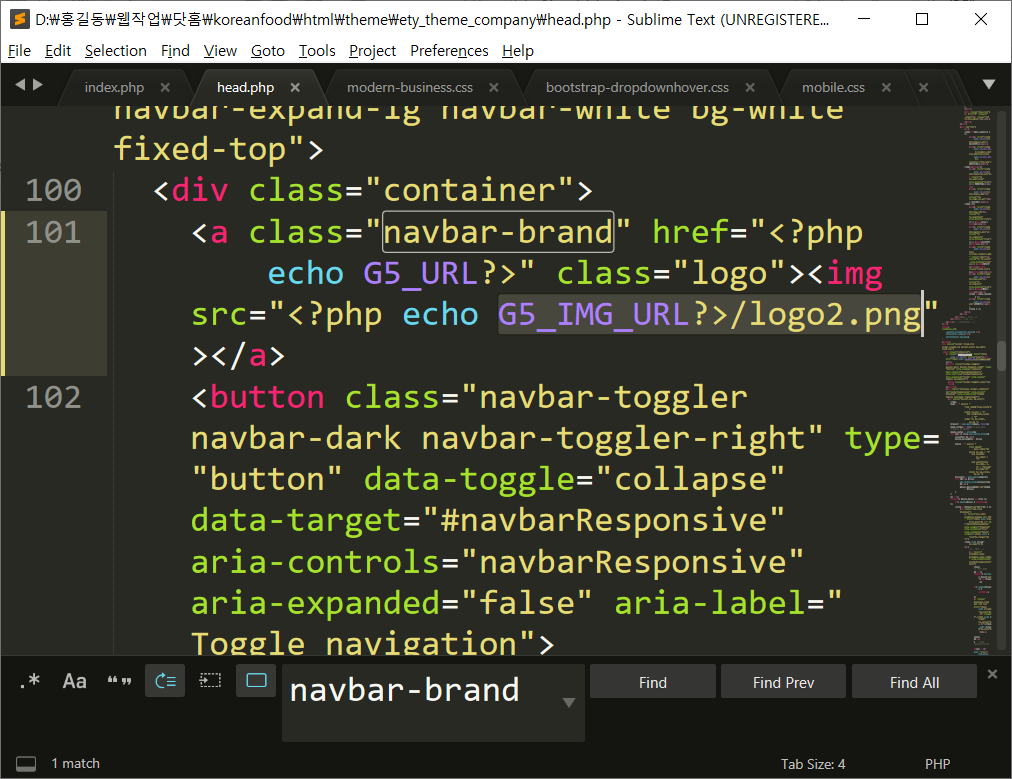 로고이미지(logo.png)의 위치는 /html 디렉토리내 img 디렉토리 속에 업로드하고 아래 내용대로 수정하면됩니다.