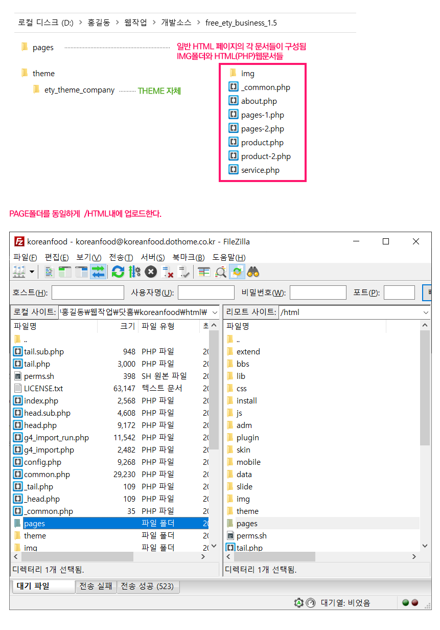 루트인 /html 내에 /pages 폴더 업로드합니다.