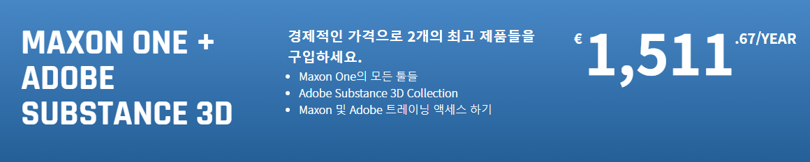 Autodesk Maya 1년 구독료 1인당 247만원 정도Cinema 4D와 Zbrush를 합친 Maxon One+ 구독료 215만원