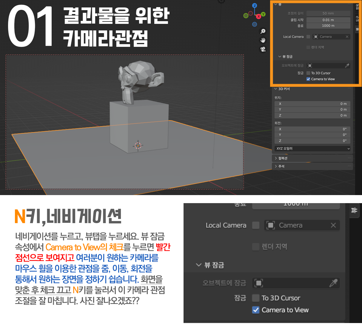 ※ 블렌더 사용 시, 오른쪽에 넘버패드가 없는 15인치 노트북 사용자는 설정-입력-넘버패드를 에뮬레이트