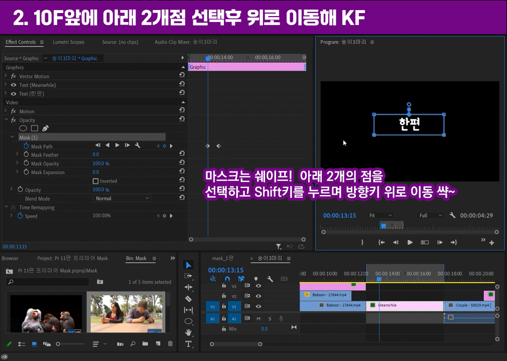 프리미어 프로 CC에 추가된 MASK기법은 After Effects에 있는 기능을 프리미어에 그대로 반영한 새로운 기능입니다. VIDEO CLIP을 제한적으로 보이게 하는 MASK기법 ONE! (One of the MASK techniques to make the video clip appear limited!)