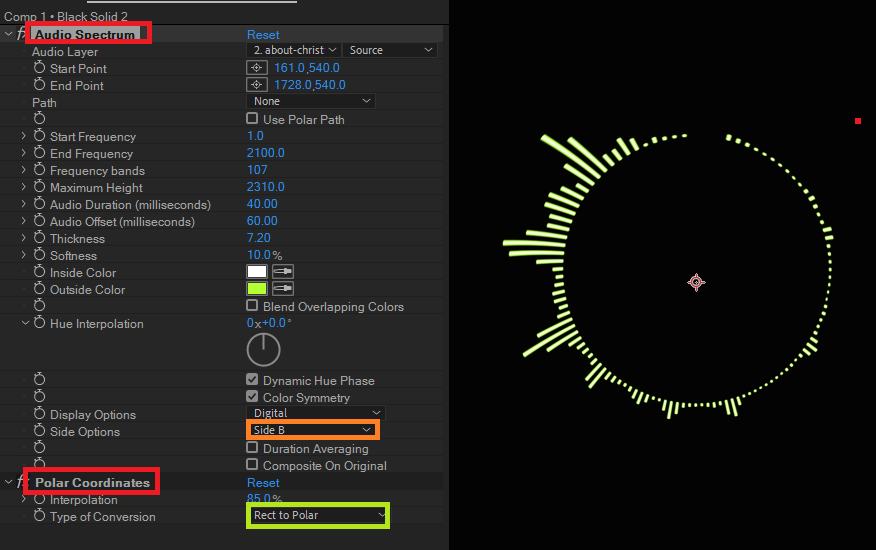 After Effects에서 Audio Waveform에 맞춰 선형, 원형의 Epectrum 효과를 Solid Layer에 적용하는 Audio Spectrum과 원형의 Polar Coordinates 효과로 Audio에 반응하는 선형 모션그래픽을 표현할 수 있습니다.