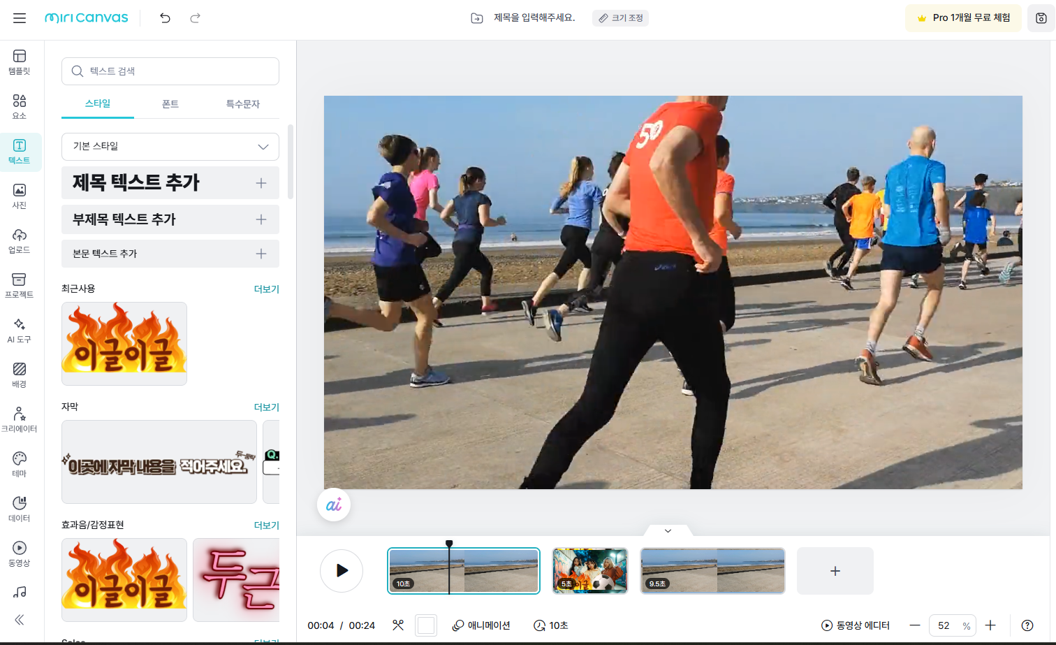 프리미어 프로와 같은 전문적인 편집보다는 짧고 간편하고 쉽다는 점이 특징이며, 업로드한 파일은 편집과 렌더링 작업 끝나면 미리캔버스의 저장공간에서는 지워야 합니다. 거기는 저장공간이 아닌 서비스 공간이라 상당한 클라우드 이용비용을 내야하니까요