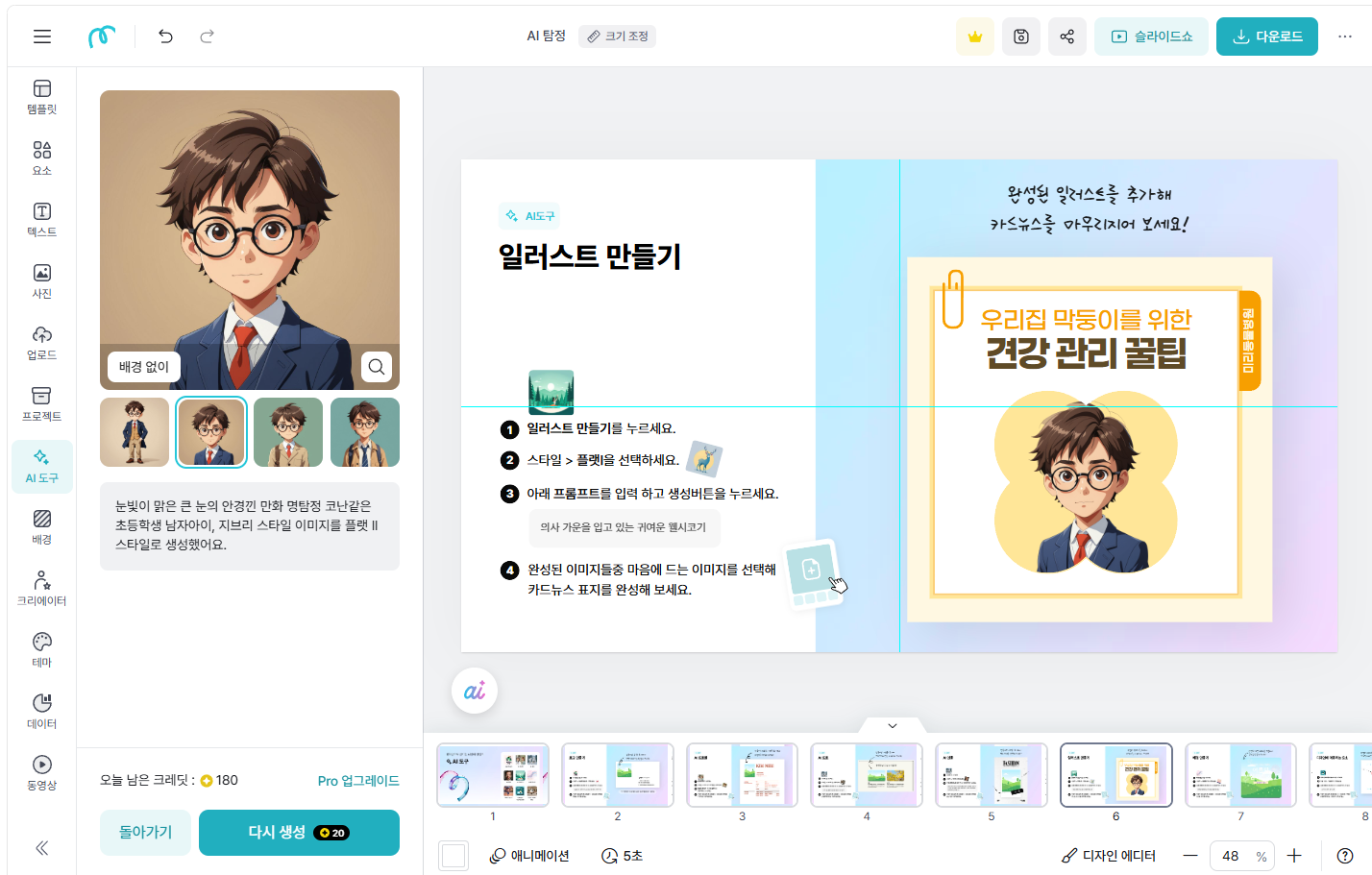 인공지능 미디어 생성은 크래딧으로 하는데, 매일 200크래딧을 무료로 줍니다 아래와 같은 일러스트는 보통 10~50크래딧으로 이미지를 구할 수 있습니다.