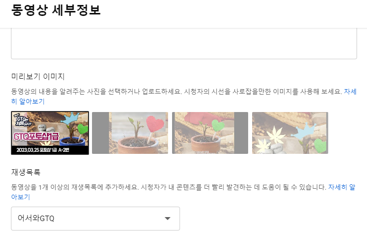 아래는 동영상 업로드시의 재생목록을 지정하는 부분입니다. 어떠한 카테고리도 아닌 경우에는 이 불쌍한 영상은 집없는 영상과도 같은 것입니다. 체계적으로 재생목록들이 다른 성격으로 배치되어 있고 꾸준한 영상이 업데이트 되야 하는 것은 유튜브 채널관리의 기본입니다. 아래는 동영상업로드 할때 재생목록- 없으면 카테고리를 지정해서 나만의 이름으로 새로 만들어 구분해서 올리세요.