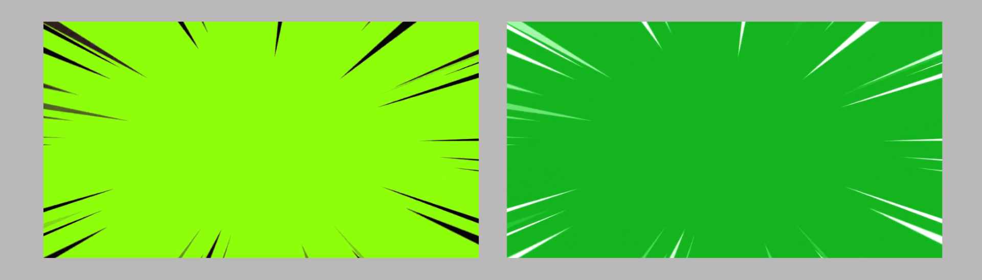 애니 집중선 효과소스로 크로마키(Green Screen) 영상은 프리미어 프로(Pr)에서는 Ultra Key효과를 이용하고, 애프터 이펙트(Ae)에서는 KeyLight를 이용해서 키컬러를 빼면 원하는 효과를 얻을 수 있다.
