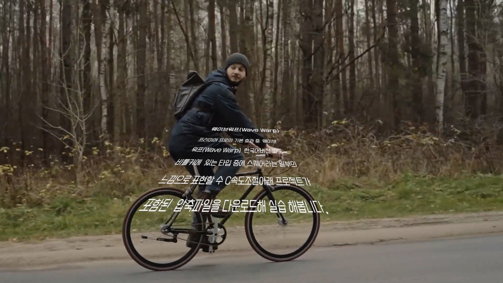 프리미어 프로의 기본 효과 중 웨이브 워프(Wave Warp) 한국어버전 파도 비틀기 에 있는 타입 중에 스퀘어라는 일부의 느낌으로 표현할 수 있습니다. 아래 프로젝트가 포함된 압축파일을 다운로드해 실습 해봅니다.