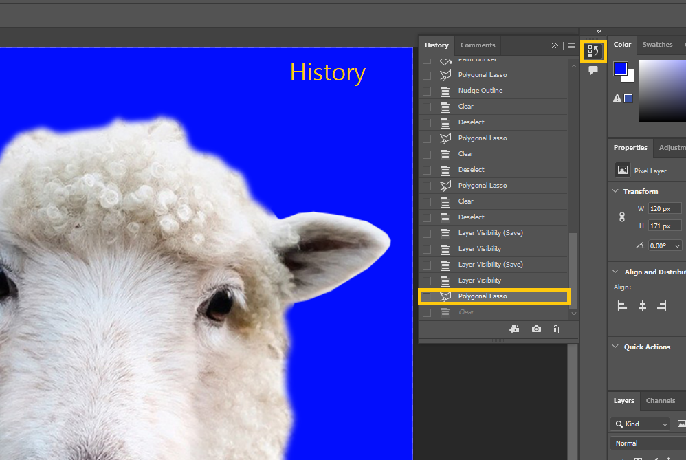 ▶예제2. 양.JPG (일반사진, 프사, 애완동물) 원본 Background레이어는 유지[원본유지법칙] / ①비아카피(C+J) 이름변경 - 양몸, 양머리 현재레이어 위에 그대로 사본생성(복제, Via Copy) >>> 비아카피 후 저장(시간소요) C+S PSD(Phtoshop Document) 포토샵 작업문서 포맷(확장자) ② 복제한 비아카피본 레이어에서 편집작업(아랫것 감추고) - 일본말로 누끼(배경제거)작업 각진올가미 도구로 작업 -옵션 Feather 페더(경계 흐리게 표현) 기본0 , 4적용시 안밖으로 8px만큼의 뿌연처리 ★Feather는 값 확인하고 명확한부분은 0, 뿌연부분은 4엔터!!! 다음 선택 작업 후 Delete키로 선택부분을 지운다. 다음 선택을 위해 현재 선택한 범위는 C+D로 해제하고 이어서 다른 작업. 작업전 우선, ★★★★페더값을 확인하고 작업하는 습관을 갖자! ex)모피옷에 청바지를 입을 여인 / 신체는 명확 F:0, 머리와 털 F:3~ ★Feather값이 있는 경우에는 Del(Delete)키를 2회정도 주면 파고들듯이 지워준다.