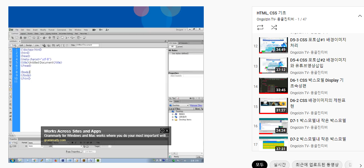드림위버에서 서브라임텍스트까지 웹퍼블리셔를 위한 HTML, CSS로 꾸며보는 방법을 함께 배울 수 있습니다. 따라하기를 위해 PC에서 시청해주세요.