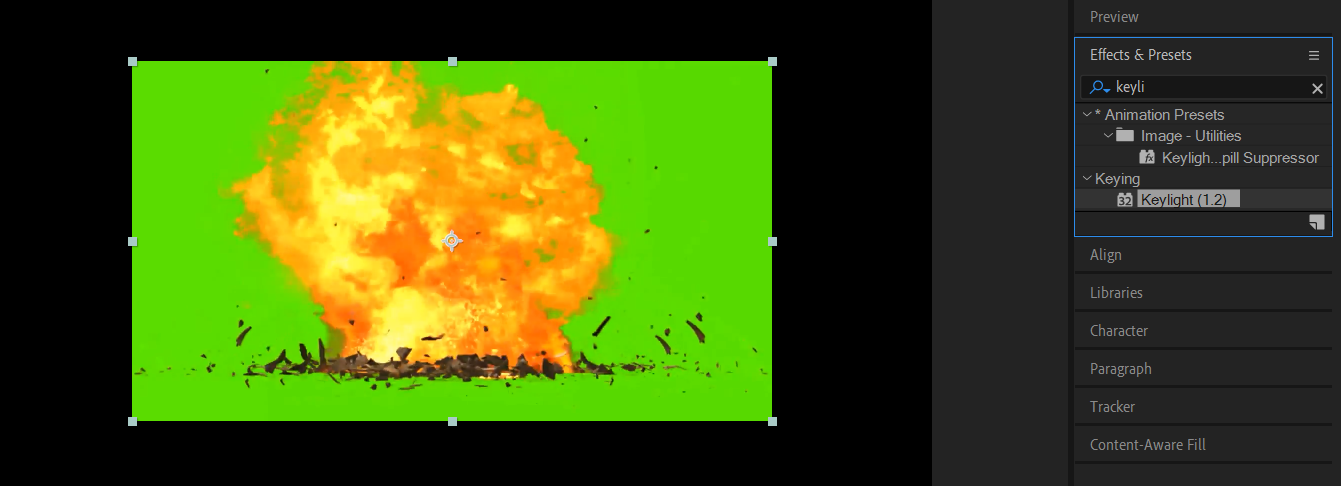Keylight, Track Matte, Blend Mode, Fire & Explosion