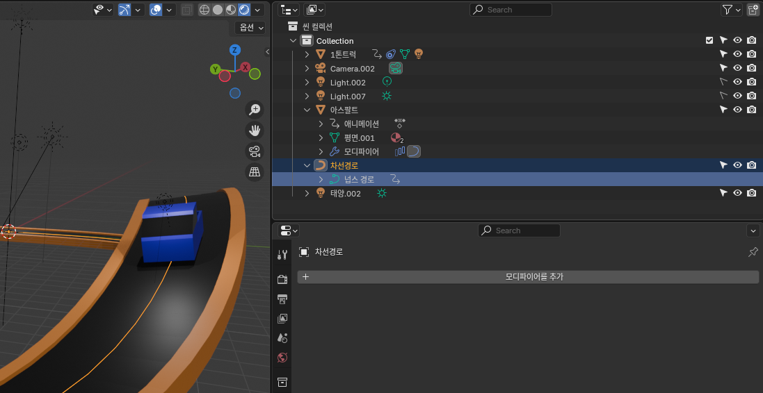 03. 자동차를 선택하고 오브젝트 제약추가에서 경로를 따라가기를 추가해줍니다.