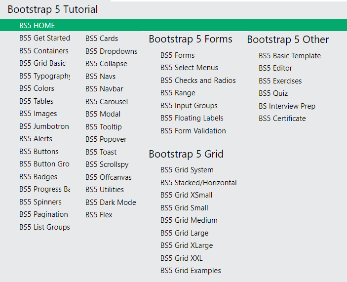 Bootstrap 5 그리드 시스템에는 6가지 클래스가 있습니다. 그중 정리한