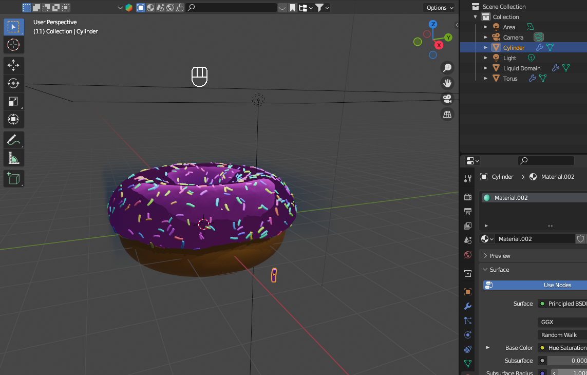 01. 조그마한 입자형상의 기본 매테리얼 색상을 지정해주고, 쉐이더 에디터로 이어지는 작업을 합니다.
