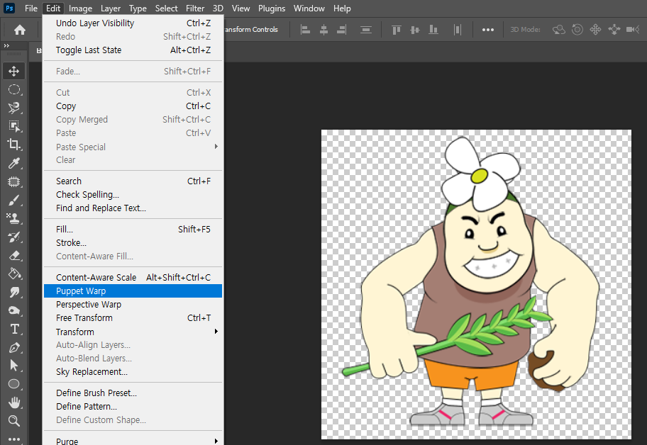 2.사본으로 복제된 위 레이어에서 메뉴 Edit-Puppet Warp를 실행합니다.