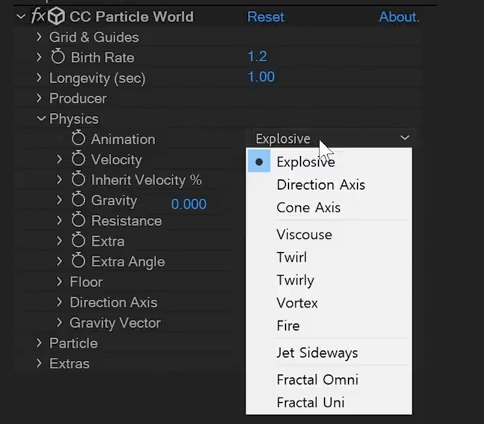 VFX시각효과에서 파티클 입자표현은 정해진 형상의 먼지, 비눗방울, 꽃잎 등을 부서지는 입자가 아닌 형태를 중력의 힘으로 일정한 힘과 방향으로 날리는 것으로 애프터이펙트에서는 CC Particle World 효과를 통해서 줄수 있습니다.