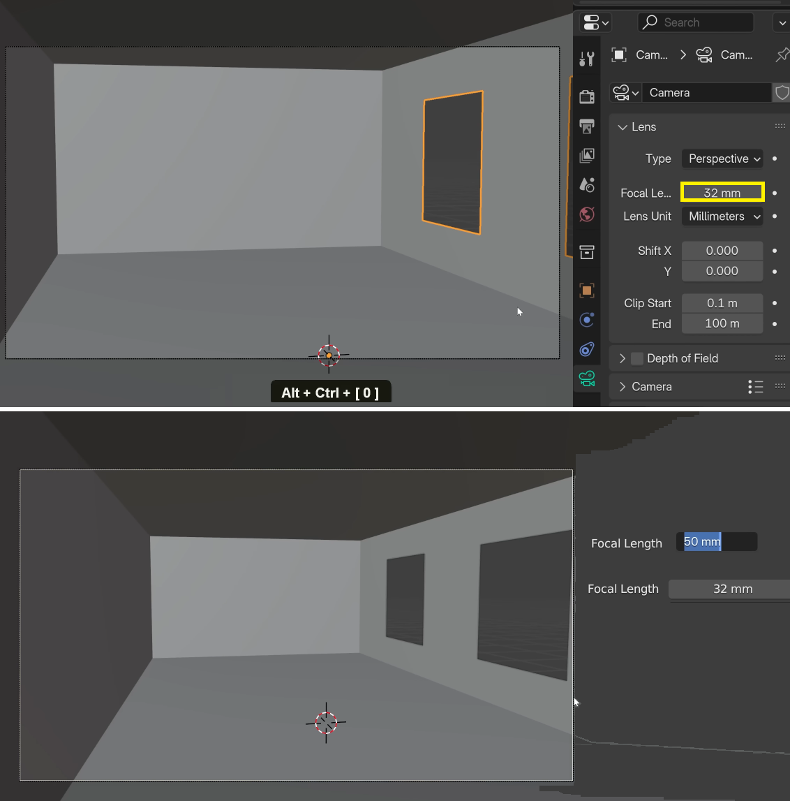 ■ 팬(Pan) : 마우스의 휠(MMB:Midle Mouse Button)을 누르면서 드래그를 하면 상하좌우 돌려보기 키보드 우측의 Number-Pad를 통해서 0 카메라관점(렌더링결과물), 1 앞면(Front), 3 우측면(Right), 7 윗면(Top)를 볼 수 있고, Ctrl키로 반대쪽을 볼 수 있다. (Ctrl+1 뒷면보기)