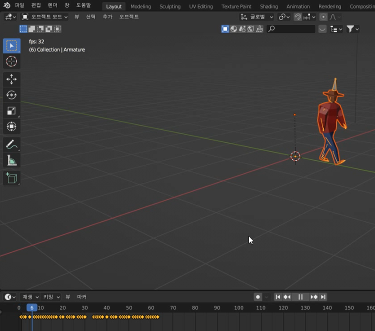 05. 다운로드한 FBX파일을 새문서에 큐브를 지우고, File-Import를 통해 가져와서 타임라인에서 확인하면 끝!