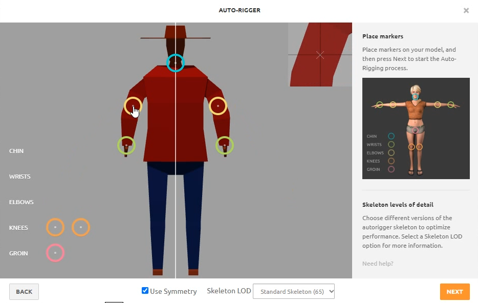 03. 목에서 무릎까지 안내하는 대로 지정하고 오토리깅을 기다린다.