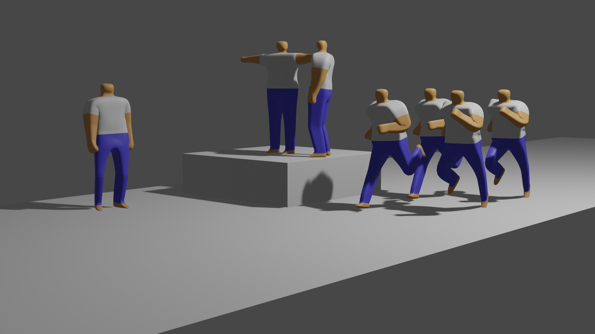 위 동작들을 각기 다른 캐릭터들 처럼 표현하기 위해서는 위 강좌대로 하면 됩니다. 하지만 하나의 캐릭터의 연결된 동작으로 표현하는 믹싱(Mixing)작업을 위해서는 아래 강좌를 참고하세요.