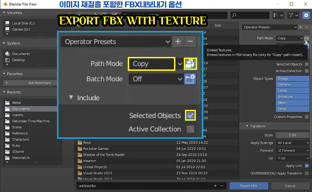 Blender에서 FBX내보내기