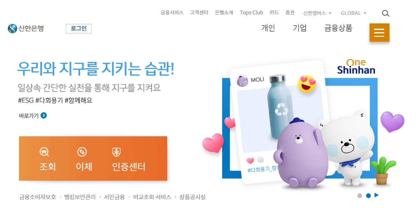 기업과 환경이 상생하는 지속가능금융 / Pursuing sustainable environment and bring future / 고객과 함게 추구하는 지속가능미래 / 신한금융그룹 신한은행