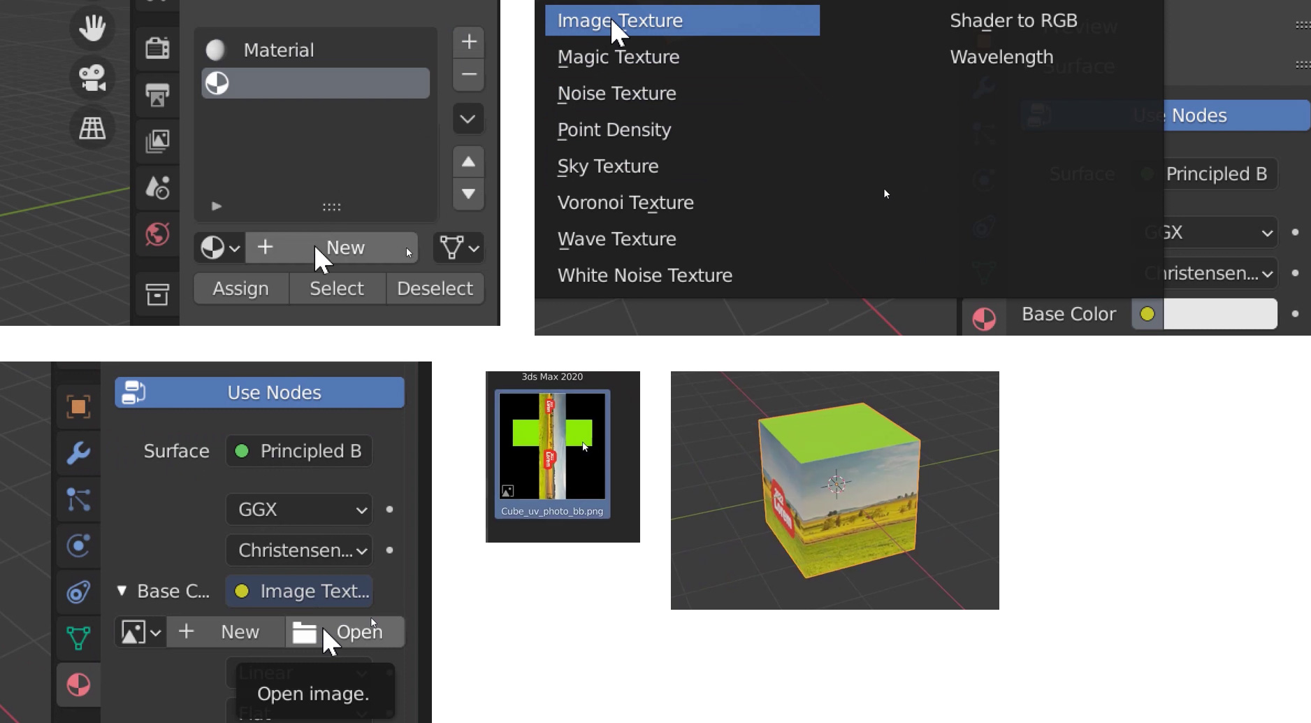 04 최종 Material을 추가하고 Image Texture를 선택한 후 UV Map을 열고, 렌더링 모드에서 확인한다.