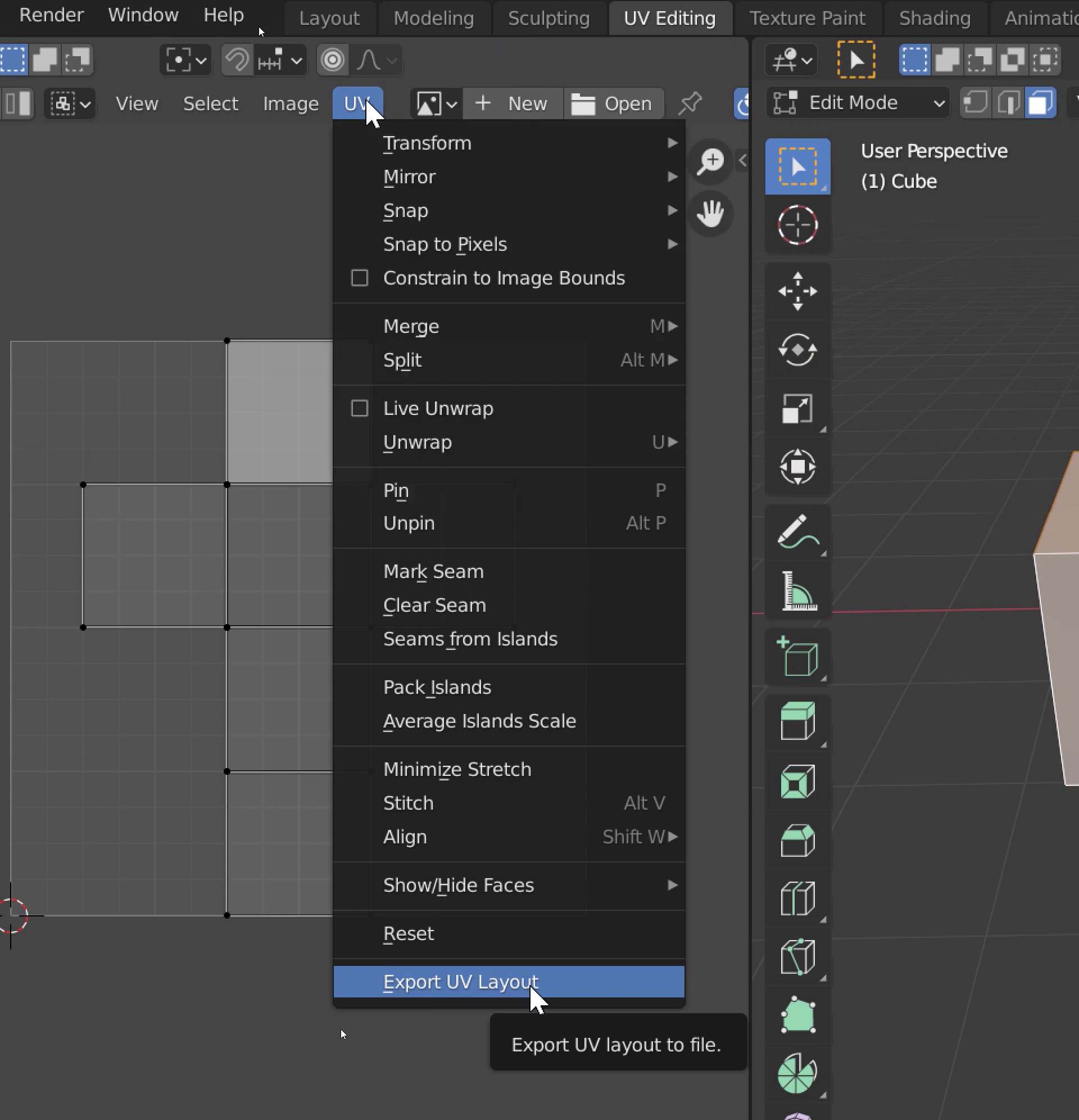 02. UV Map작업공간에서 아래 그림과 같이 UV- Export UV Layout을 누르고