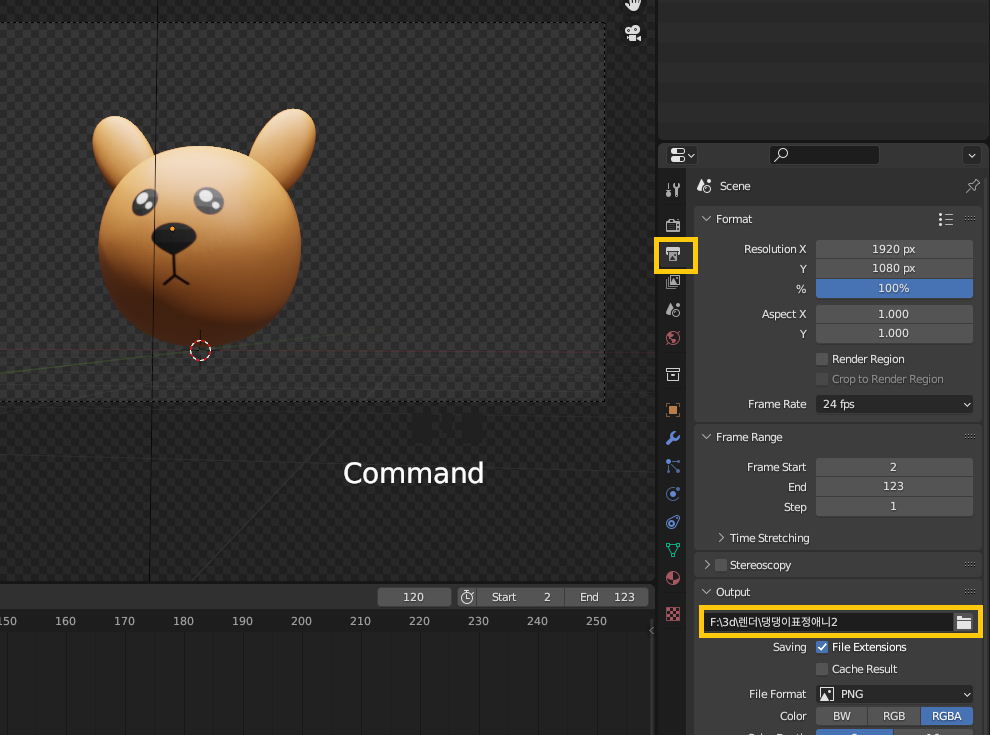 01.아웃풋 셋팅에서 PNG Alpha로 정하고 내보낼 위치를 정한다.