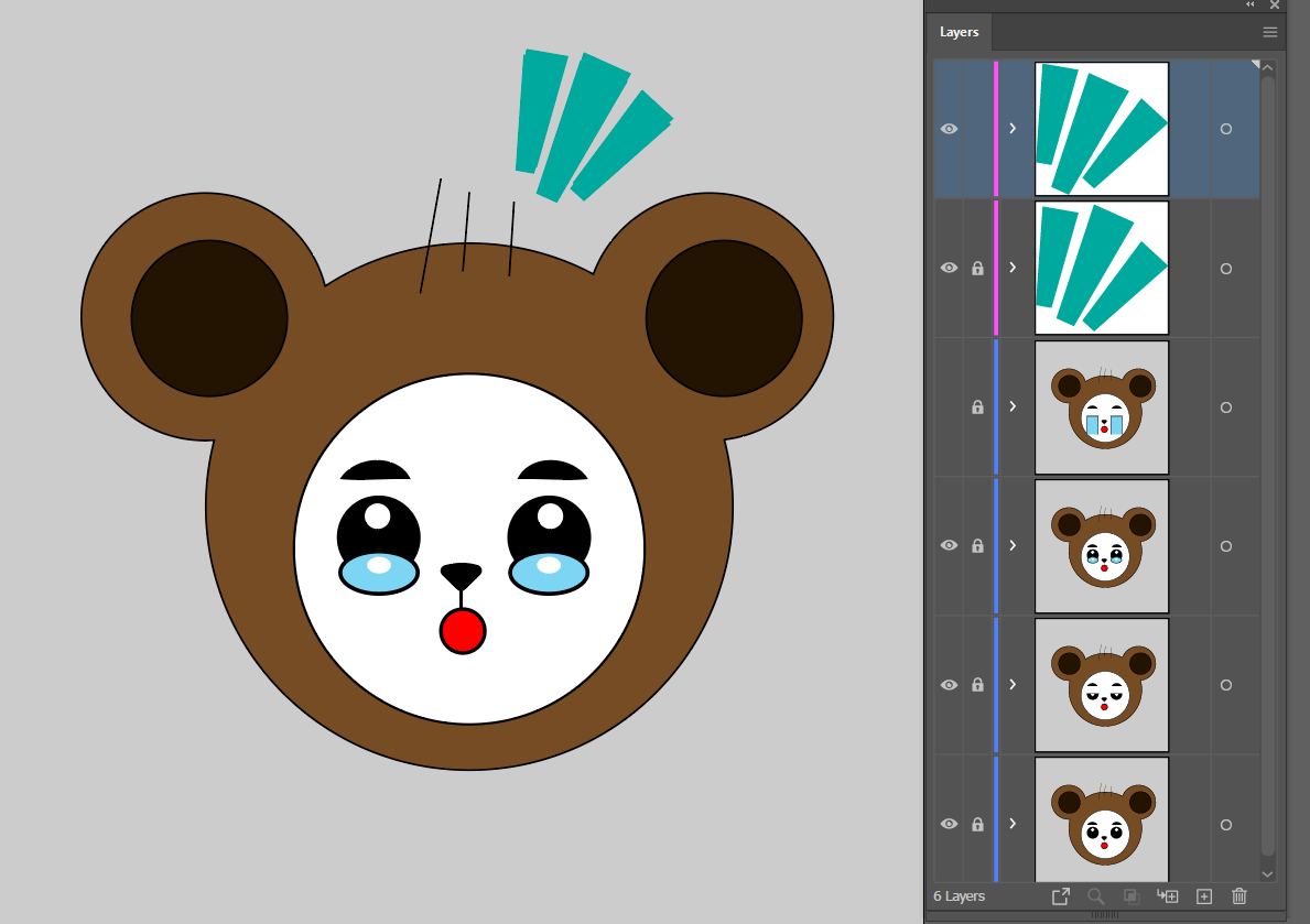 캐릭터 심볼 표정을 일러스트에서 심볼의 장점을 활용해서 다양한 표정을 준비합니다. 각각의 레이어에 표정을 달리해서 준비하고 File-Export-Export As... 로 PSD파일로 내보내서 포토샵의 프레임애니메이션 작업후 GIF 파일로 내보내기 까지 소개합니다.