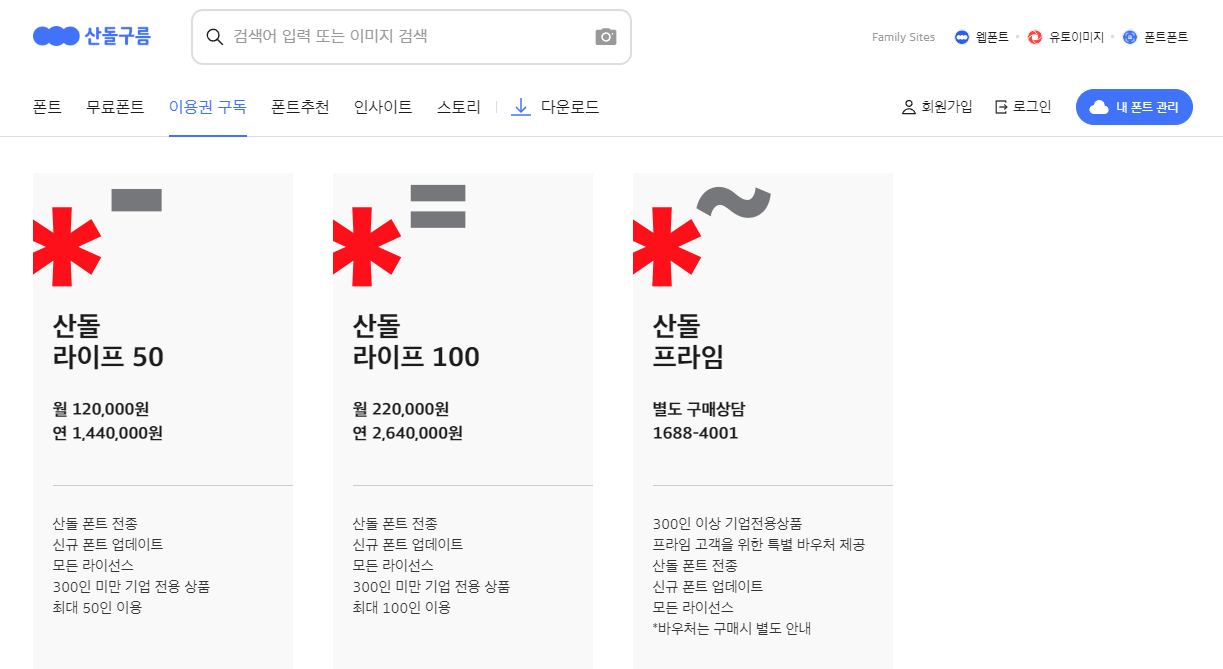 디자인 및 캐릭터, 영상제작에 사용하는 서체는 정보와 사용자들에게 전달하려는 메시지, 캐릭터의 경우는 감성적인 언어적인 표현에 주로 적용하는 것이 더 효율적이다. 상업적으로 사용하는 서체 중 산돌서체의 경우에는 월22만원, 년264만원으로 전체 폰트 이용권을 구매하여 사용하기도 하는데, 금전적인 부담이 아닐 수 없습니다. 우연히 구한 폰트가 유료인지, 무료로 사용가능한지는 구글검색을 통해서 꼭 알아보고 사용하시기 바랍니다.
