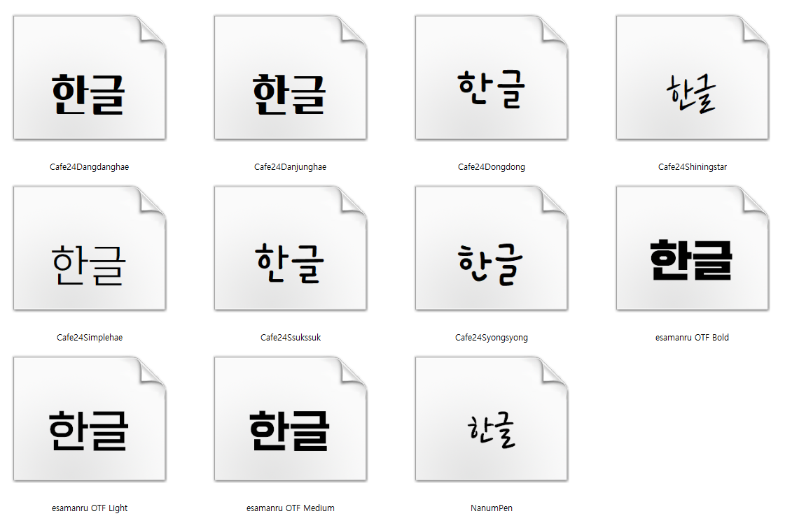 여러분이 알고 있는 굴림, 돋움, 궁서, 바탕, 맑은 고딕은 한국에 기본으로 설치된 서체들입니다. 아래는 눈누에서 검색해서 디자인 작업에 적합할 몇몇 추천하는 무료서체들을 압축파일로 준비했으니 사용법을 참고하시되 영상참고하여 다운로드후 설치하고 잘 활용하시기 바랍니다.