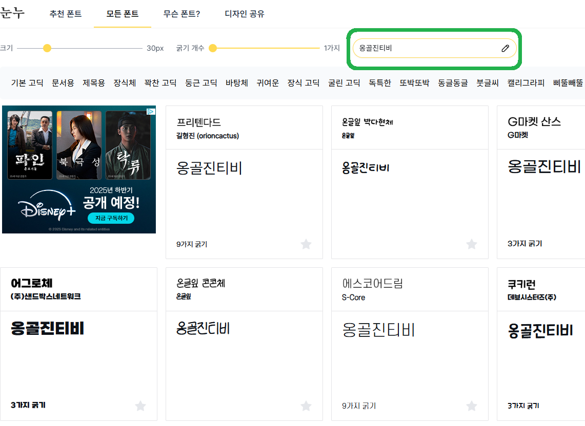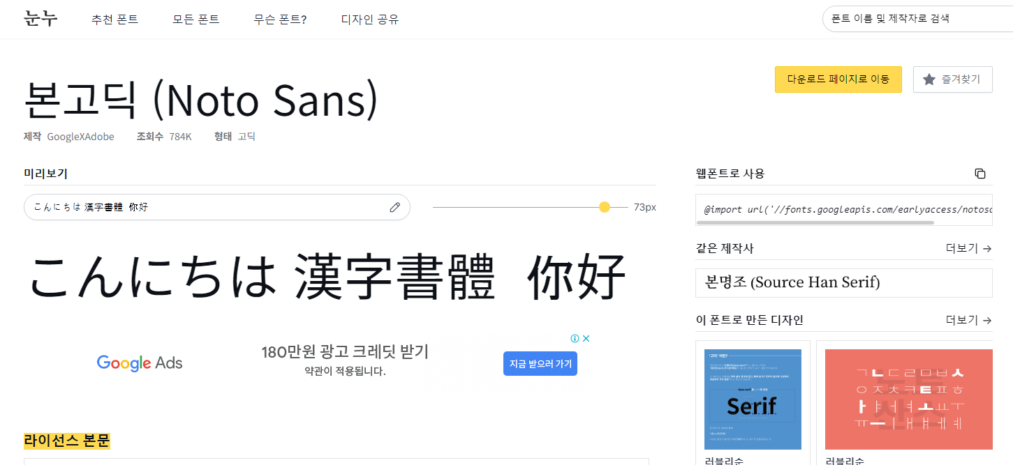 눈누는 아래 배너를 클릭하면 공식사이트를 통해 서체를 검색할 수 있습니다.