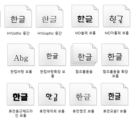 2022. 8. 14. JTBC 뉴스룸에 [매트릭스] 기자가 알린 "HY 글꼴 썼다가…'폰트 합의금 장사' 주의보" 는 매년 수천 건의 사건 중 하나의 사건이라는 것입니다. 여러분도 당할 수 있으니 한글워드프로세서를 설치시에 그래픽글꼴을 아예 체크하지말고 설치하지 마시기 바랍니다. 아래는 한컴오피스의 알려진 서체들입니다.