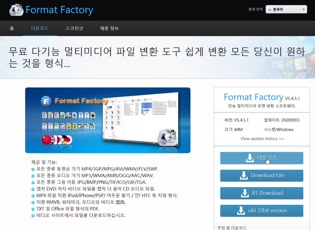 Format Factory 벌 만능 멀티미디어 포맷 변환 소프트웨어.