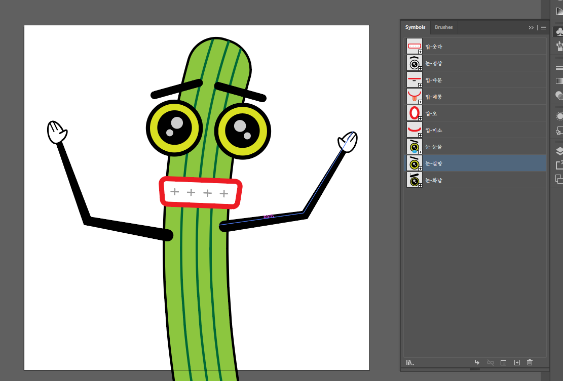 Emoticon Character Design과 Frame Animation을 위한 일러스트레이터의 아트브러시를 활용한 팔과 다리의 표현과 함께 심볼로 표정을 만들어 나가는 제작방법을 소개하는 시리즈입니다.