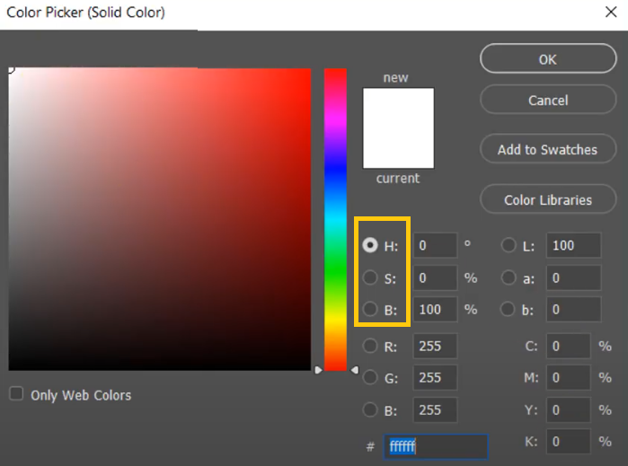 - HSB : 색을 인지하는 방식을 기초로한 색상,채도,명도로 색을 표현하는 컬러모드. 디자이너들이 쉽게 색을 혼합하여 사용하는 가장 일반적인 것으로 포토샵의 컬러픽커의 기본모드이다.