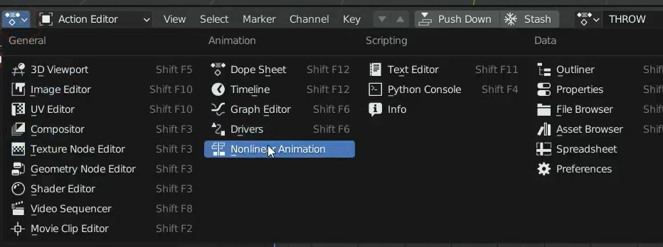 좌측상단의 항목을 펼치고 Nonlinear Animation을 선택해줍니다.