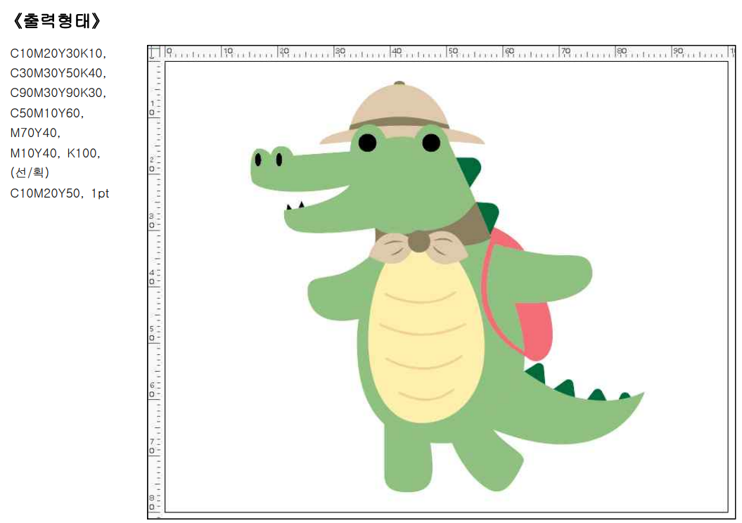 ① 도형, 변형 툴과 Pathfinder 기능을 활용하여 오브젝트를 작성한다. ② 그 외《출력형태》참조