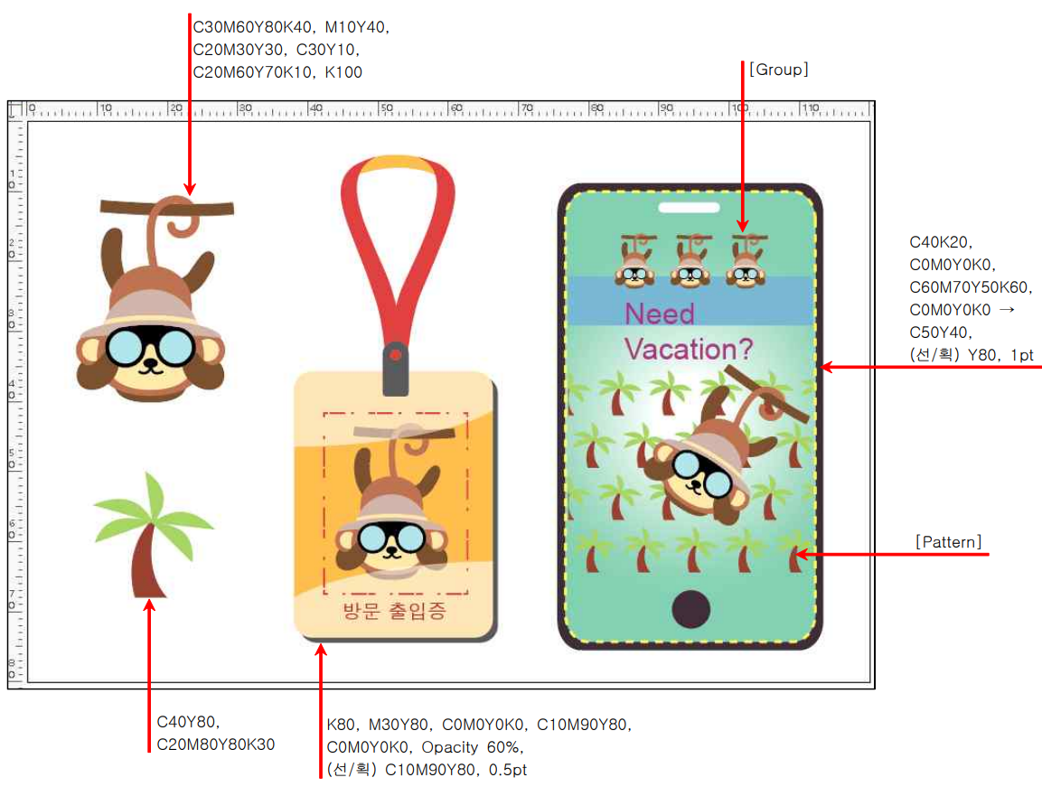 ① 도형 툴로 오브젝트를 제작한 후 Pattern을 활용하여 작성한다. (패턴 등록 : 야자수)