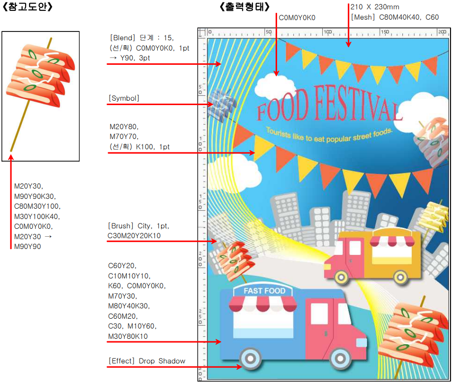 컴퓨터그래픽 운용기능사 실기와 GTQi일러스트 1급수준의 일러스트레이터 표현을 할 수 있으면, 자격증취득 외에도 다양한 아트워크 작업을 할 수 있는 자격을 갖추게 됩니다. 아래는 수준이 높지만 1급 일러스트 시험기준의 AB형을 구분해서 문제로 제시하니, 최신 기출문제가 아닌 지난 횟수의 다양한 문제를 풀어보기 원하는 분들에게 제시하니 많은 활용 바랍니다.