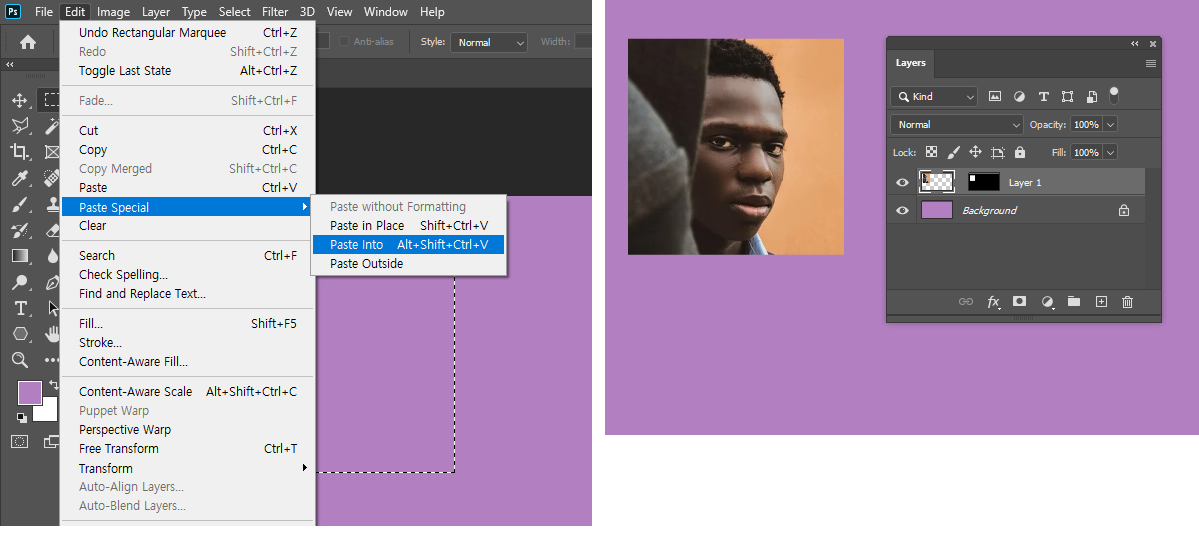 제자리에 붙여넣기 Paste in Place (Mask) CAS+V