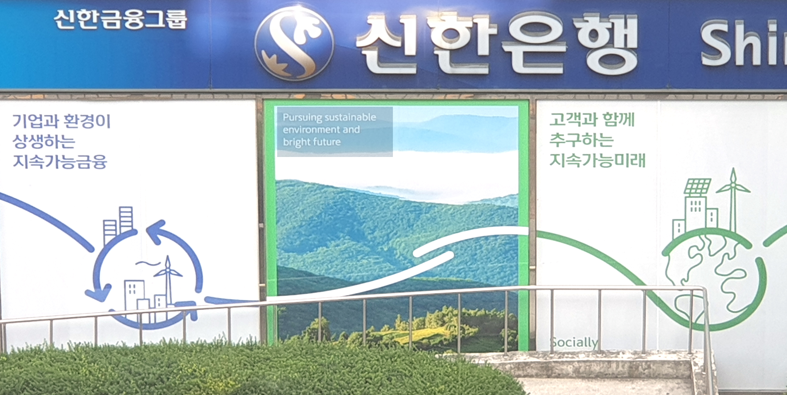 고객과 함께, 추구하는 지속가능 미래 - 신한은행의 광고영상의 콘셉트를 제공한 사인광고