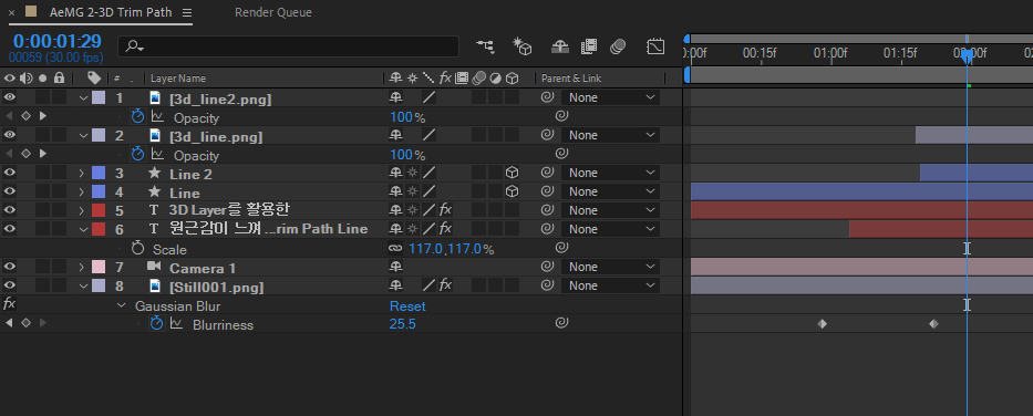 아래 Shape레이어 ★Line, Line2 2개가 해당 Trim Path가 처리된 레이어입니다.
