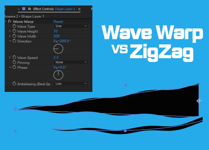애프터이펙트에서는 바람 부는 머릿결이나 깃발의 파도치듯 보여지는 움직임, 주룩주룩 눈물 흘리는 장면을 표현할때 Wave Warp를 주로 사용합니다. 이와 유사한 ZigZag, Bezier Warp 효과도 같이 소개합니다.